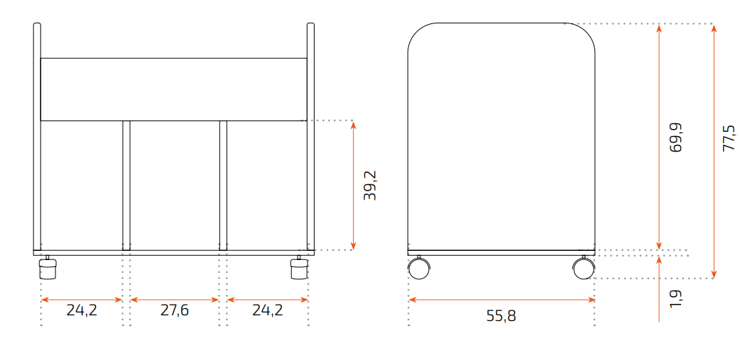 8* Equivale a una talla 5 para mesas de trabajo de pie