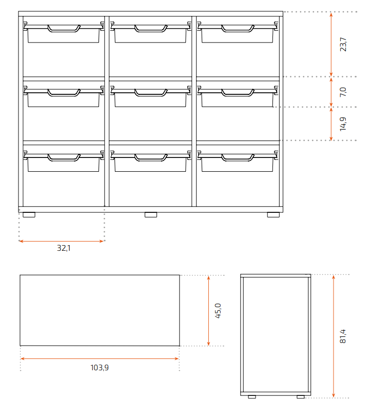 - Capacidad para 9 cubetas pequeñas
