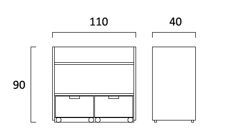 - Está dotado con un estante revistero inclinado en la parte superior, un estante recto intermedio y dos cajones inferiores de gran capacidad.