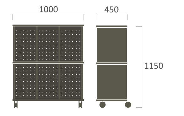 Módulo de recepción o estantería recta, diseñado principalmente para entornos escolares, oficinas o eventos. Su estructura y la incorporación de ruedas lo convierten en una solución flexible y fácil de desplazar para organizar espacios.