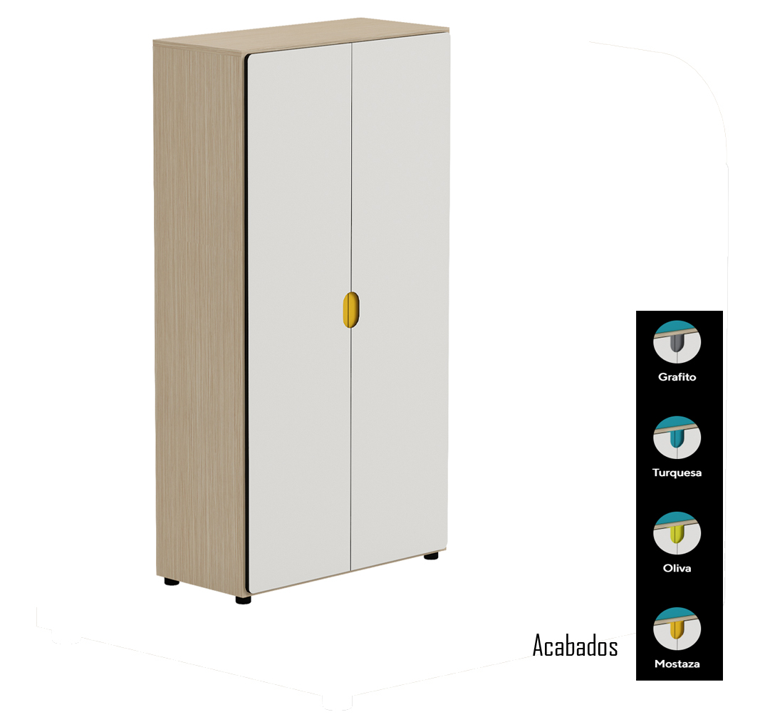 Minimalistas, robustos y con acabados neutros nórdicos, en que los colores los aporta el material escolar. Armarios bajos para almacenaje con estantes, cartulineros o bandejas. Puertas de CDF sin aristas vivas. Diseñados para un uso prolongado. Versátiles para la educación colaborativa o tradicional. Se entregan totalmente montados.