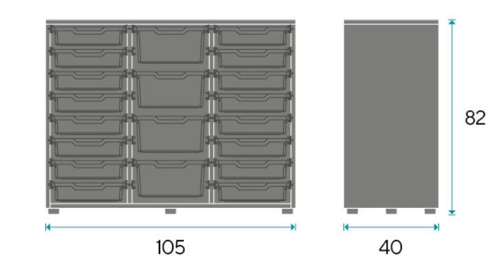 - Diseño: Cuenta con tres columnas verticales diseñadas para albergar bandejas o gavetas.