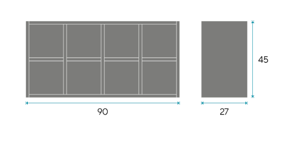 - Dimensiones: Las medidas estándar para este modelo son 90 cm de ancho, 45 cm de alto y 27 cm de fondo.