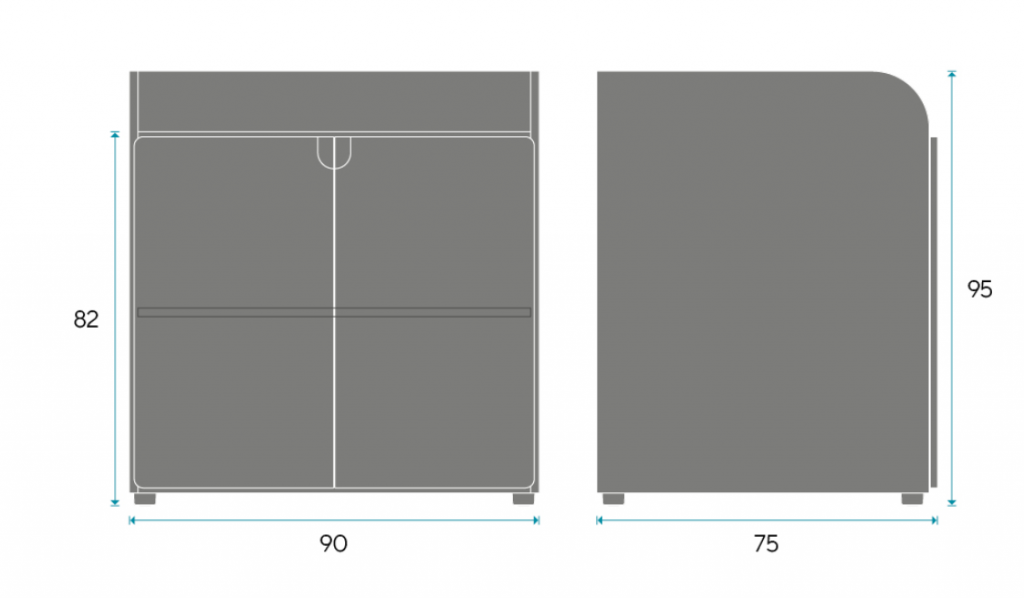 - Personalización: Los tiradores de las puertas están disponibles en varios colores, incluyendo turquesa (como el de la imagen), grafito, oliva y mostaza.