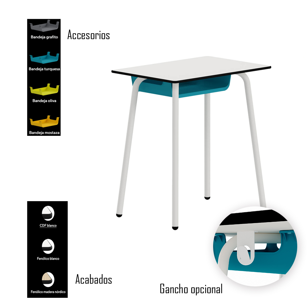 Minimalista, simétrico, sin aristas vivas y diseñado para un uso prolongado. Versátil para la educación colaborativa o tradicional. Se entrega totalmente montado.