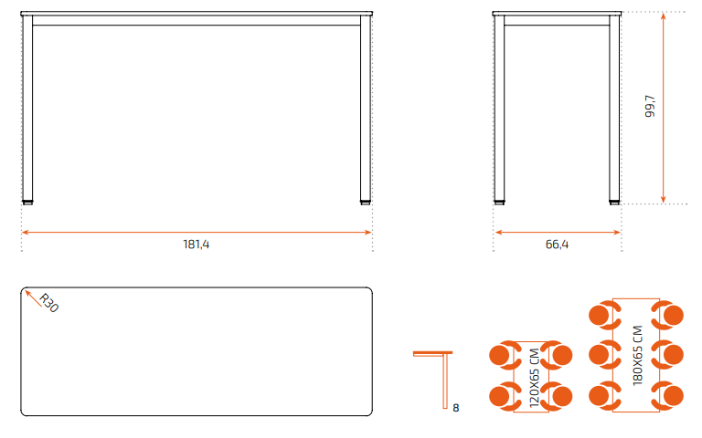 8* Equivale a una talla 5 para mesas de trabajo de pie