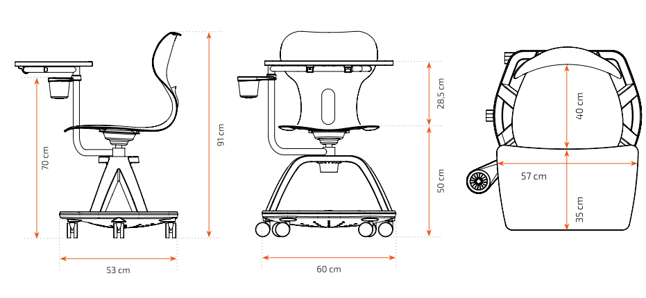 - Almacenamiento y Extras: Cuenta con una bandeja o rejilla inferior para dejar mochilas o materiales, y un soporte lateral para bebidas.